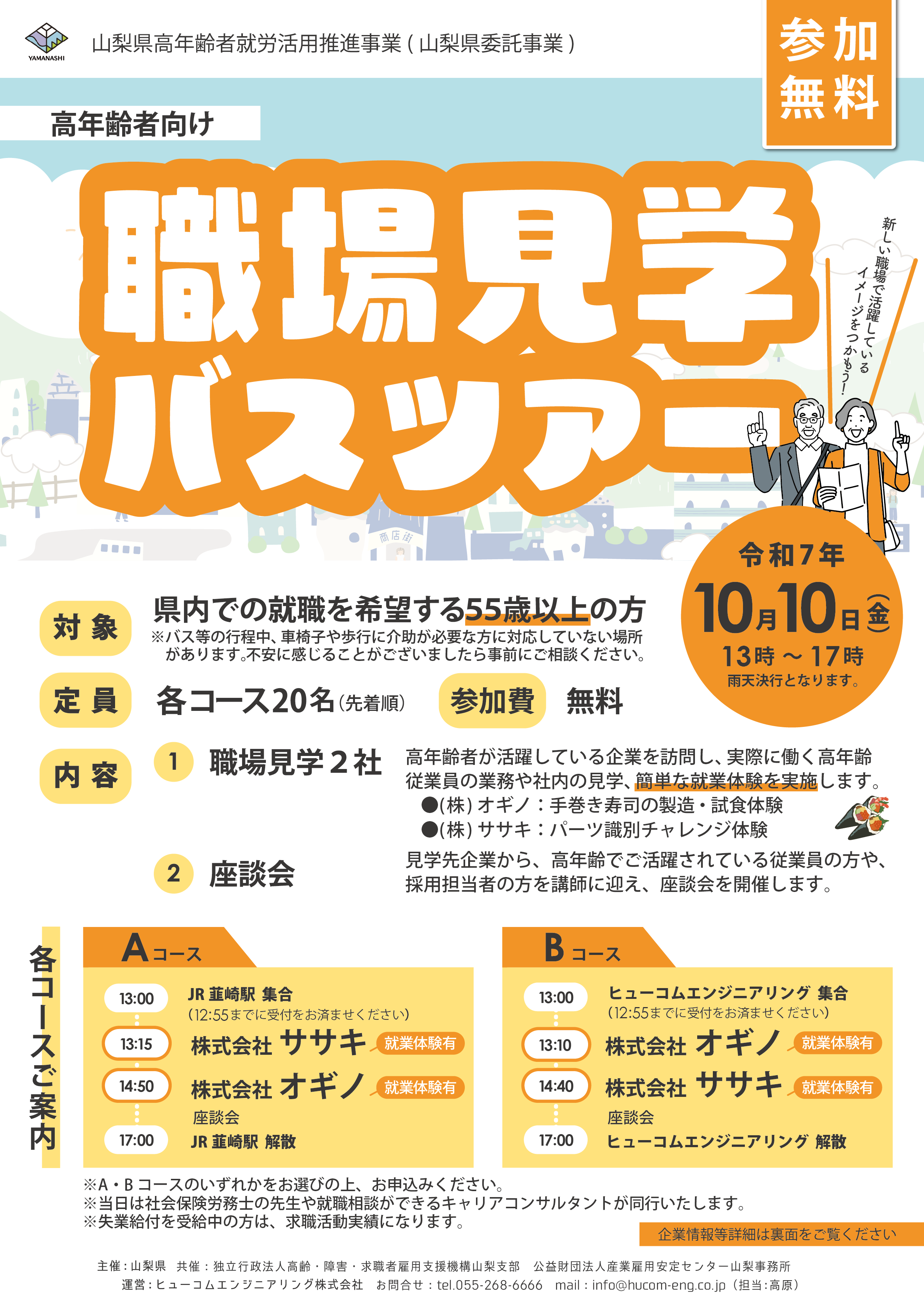 イベントイベント山梨県主催 高年齢者向け職場見学バスツアーを開催します。
